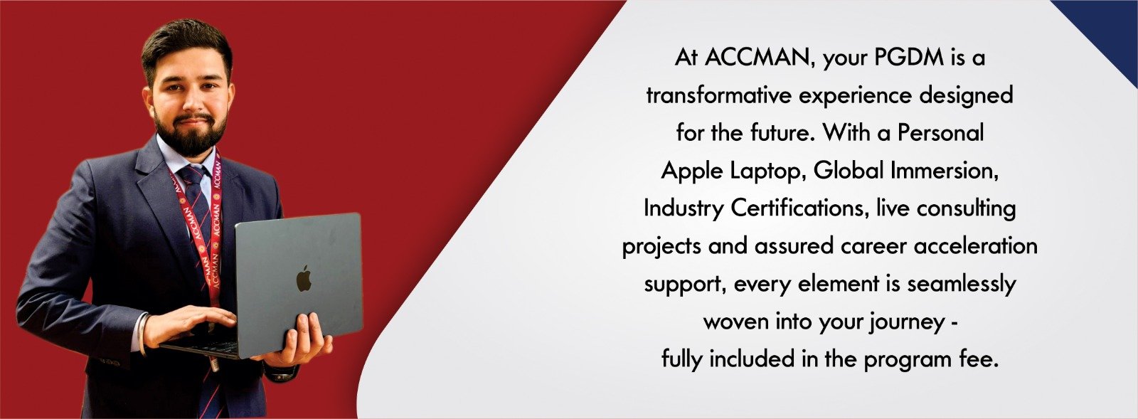 ACCMAN Institute of Management offers a structured Scholarships and Financial Assistance framework aligned with AICTE and NAAC objectives. Merit-based scholarships of up to 30% tuition fee waiver are awarded at admission based on academic performance, entrance test scores and personal interview evaluation. The Institute also provides need-based financial assistance for economically weaker and differently-abled students with support of up to 100% of the approved programme fee. All scholarships are subject to eligibility criteria, document verification and approval by the Institute Management.